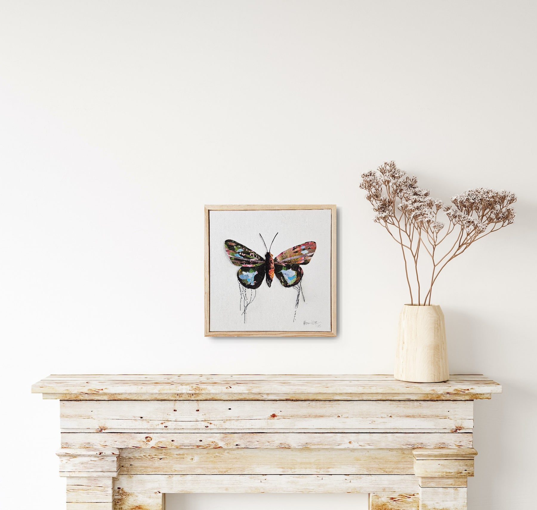 My Butterfly Moth Collection is inspired by the landscape around our 80 acres in Northern Michigan—milkweed fields full of monarchs, quiet woods, and small discoveries that invite me to slow down and really see. But my connection to butterflies goes deeper than place. They were a constant in my childhood, stitched into the needlepoint pillows my mother made and woven into my earliest memories of color and detail. Over time, they also became a symbol of my own transformation and reinvention. In many ways, these pieces echo that journey, turning tiny fragments and overlooked bits into something layered, alive, and wholly new.